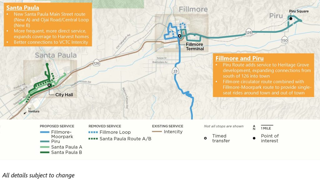- Fillmore & Piru: Combine the existing Fillmore loop with the Fillmore–Moorpark route to provide more single-seat rides.